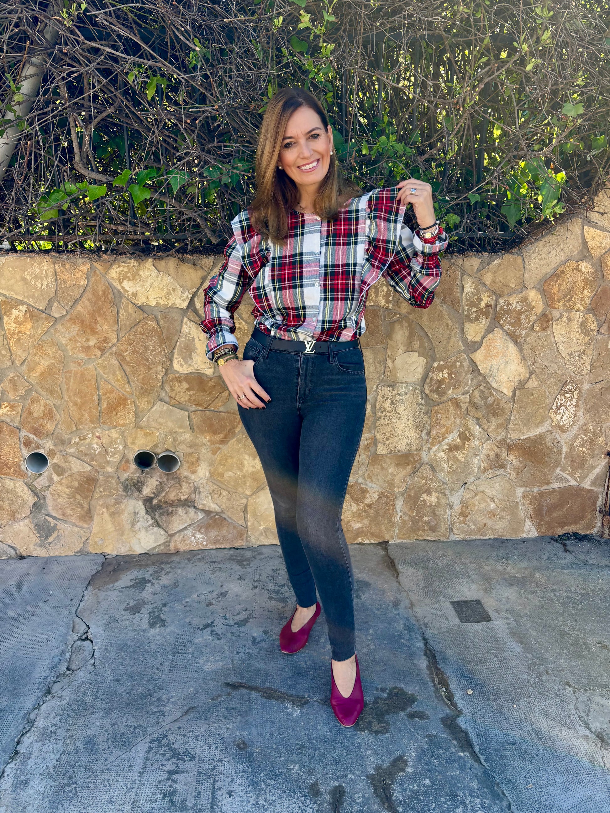 Tejido tartán en tono blanco y rojo
