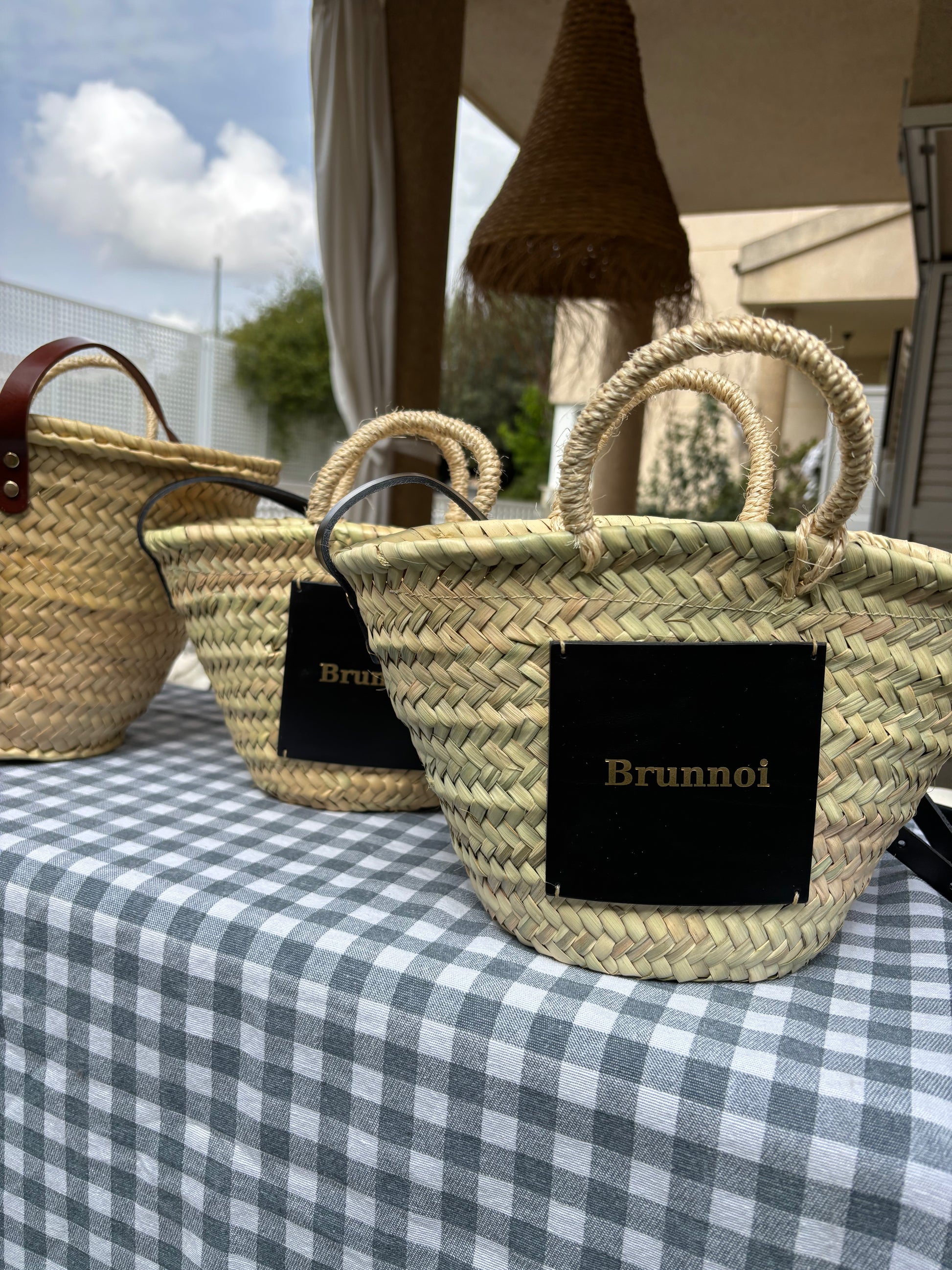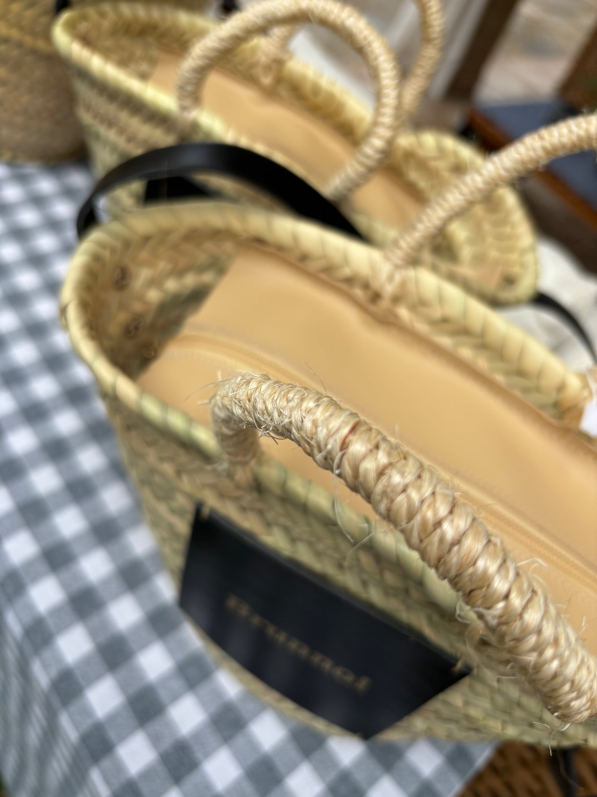 Capazo cerrado con cremallera, tejido con palma natural, asa de pita y asa de cruzar en piel con hebilla para regular.