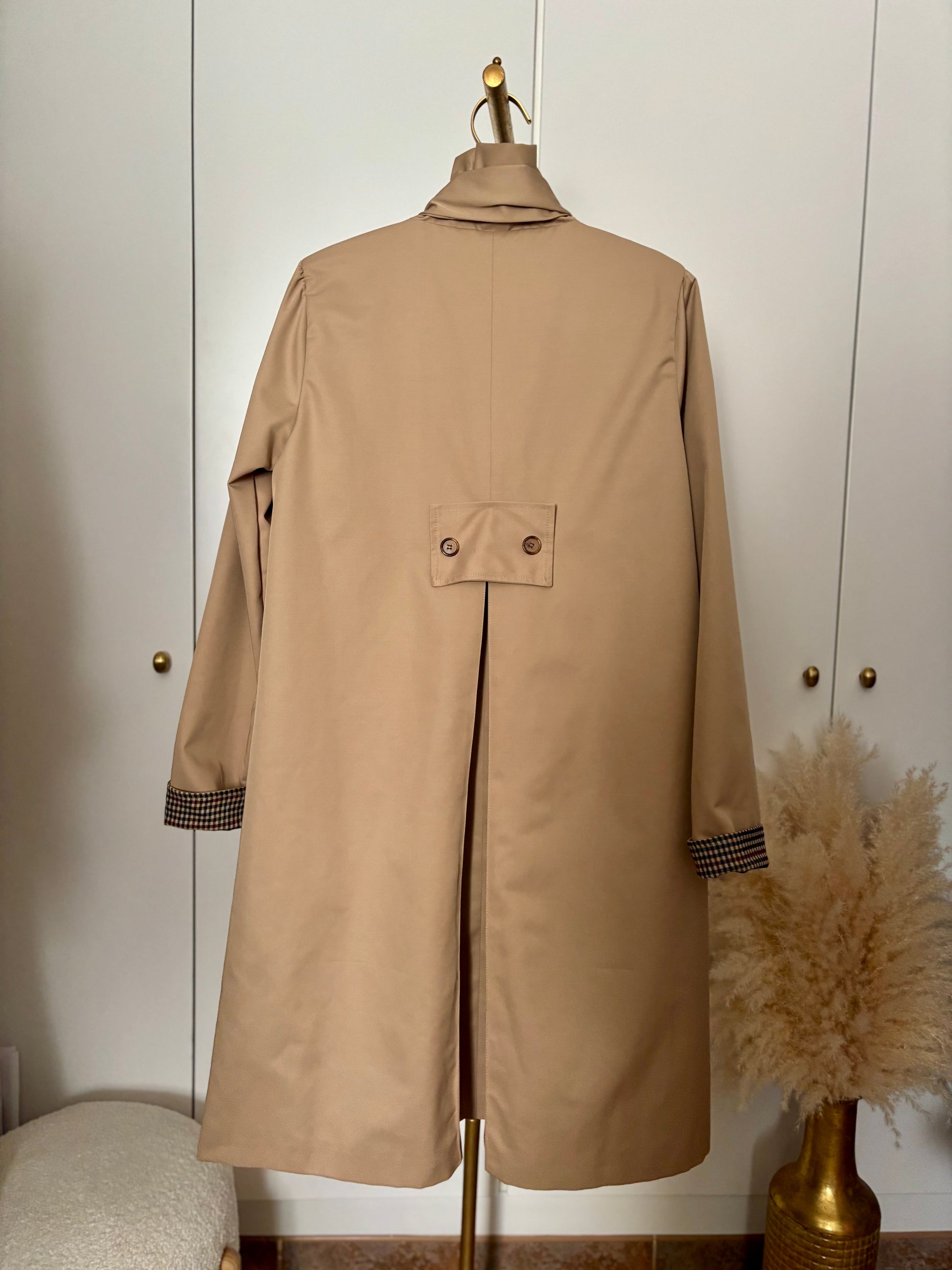 La gabardina va forrada con tejido pata de gallo calentito, bolsillos también forrados.